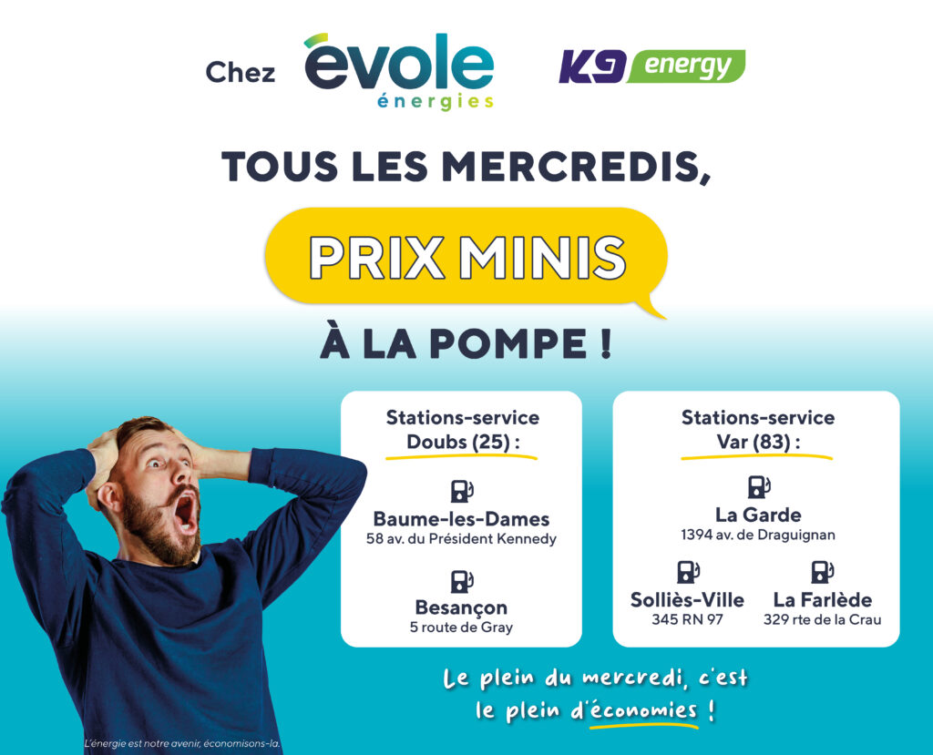 Chez évole énergies, nous avons à cœur de soutenir nos clients au quotidien. C’est pourquoi nous lançons l’opération “Carburants à prix minis tous les mercredis”, disponible depuis le 15 octobre 2025 dans cinq stations-service de notre réseau.